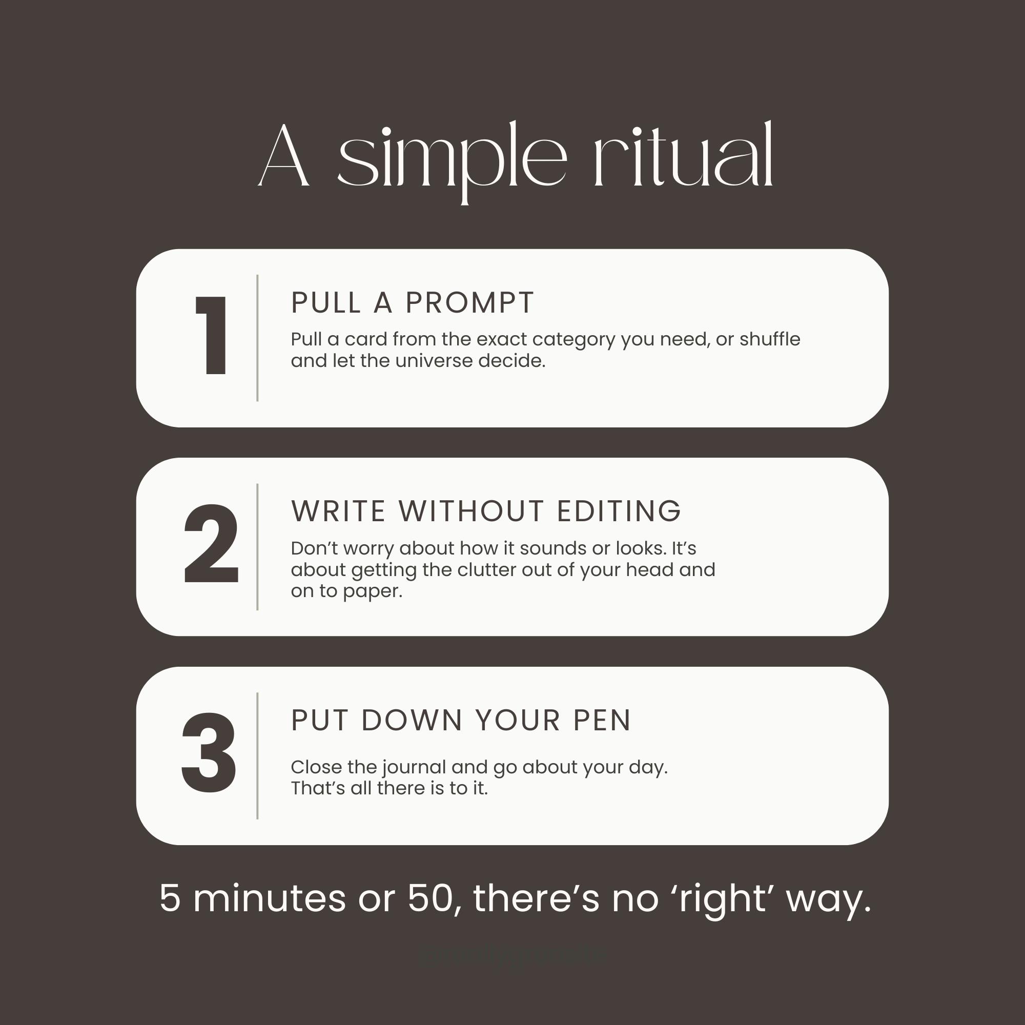 - Choose a prompt: Pull a card or shuffle the deck and let one find you.